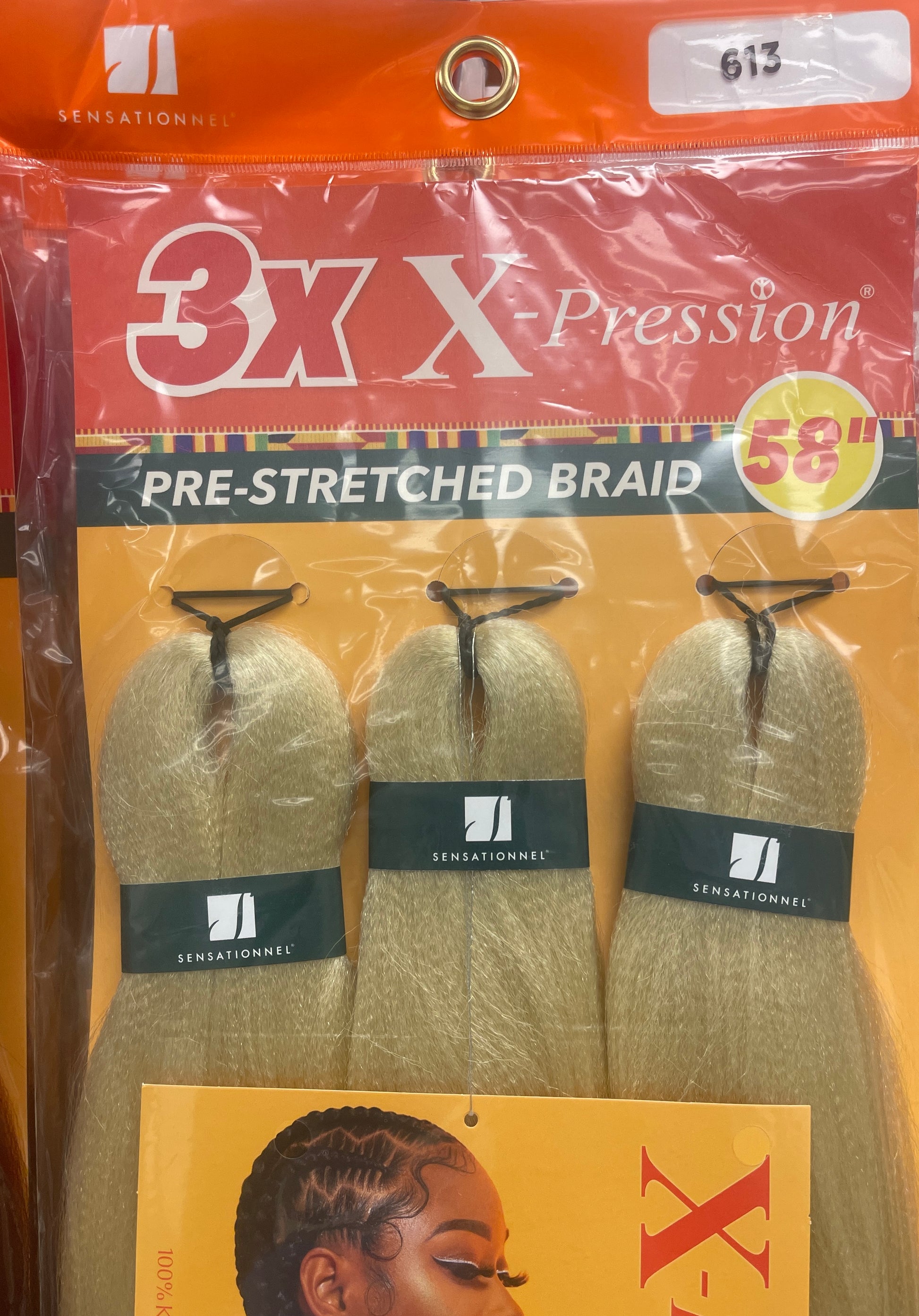 Enjoy salon-quality braids with 3X X-PRESSION Pre-Stretched Braiding Hair. The pre-stretched fibers produce a smoother and quicker installation with 50% less tension and less frizz. Experience the ease of salon-style braids with X-PRESSION Pre-Stretched Braiding Hair.
