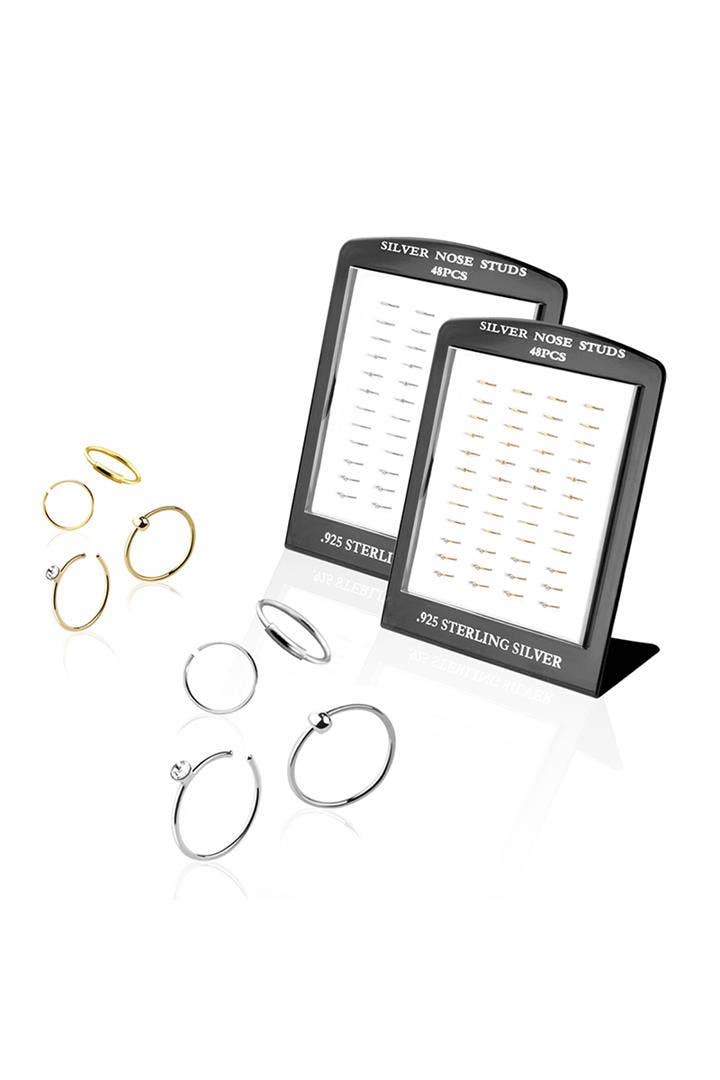 MIXED DESIGN STERLING SILVER NOSE HOOP L-STAND: GOLD / MIXED