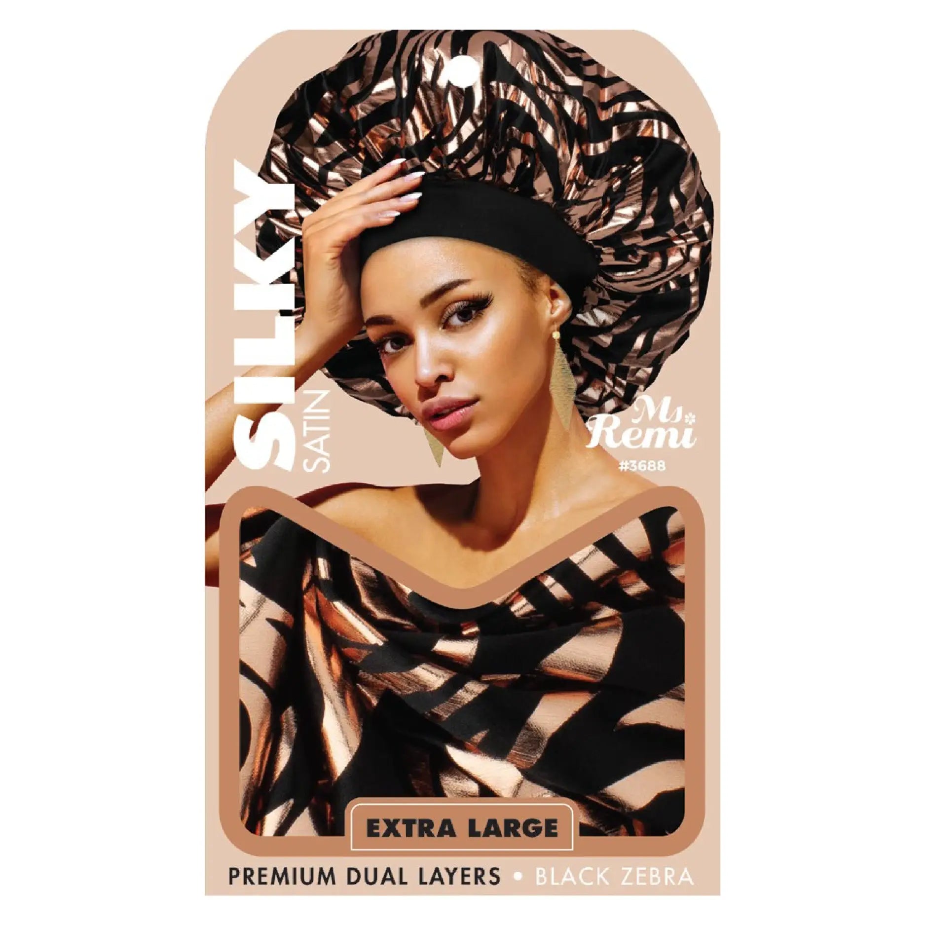 Experience the utmost in luxurious hair care with this opulent bonnet scarf. Crafted with dual layers for ultra-comfort, and an extra large size to accommodate all hair styles, it is fashioned and stylish. Breathable materials easily fit into home or lifestyles on-the-go, and it is exclusively available at Annie's in four designs: black zebra, navy zebra, black bandana, and black maze.