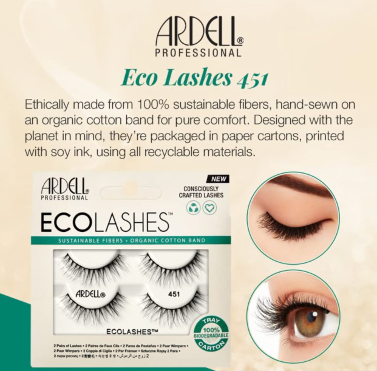 Experience environmentally-friendly and gentle lash application with ARDELL Professional-Ecolashes. Made with sustainable fibers and an organic cotton band, these lashes provide both stunning looks and a conscientious choice for your beauty routine. Expertly crafted, these lashes offer a professional and sustainable alternative to traditional false lashes.