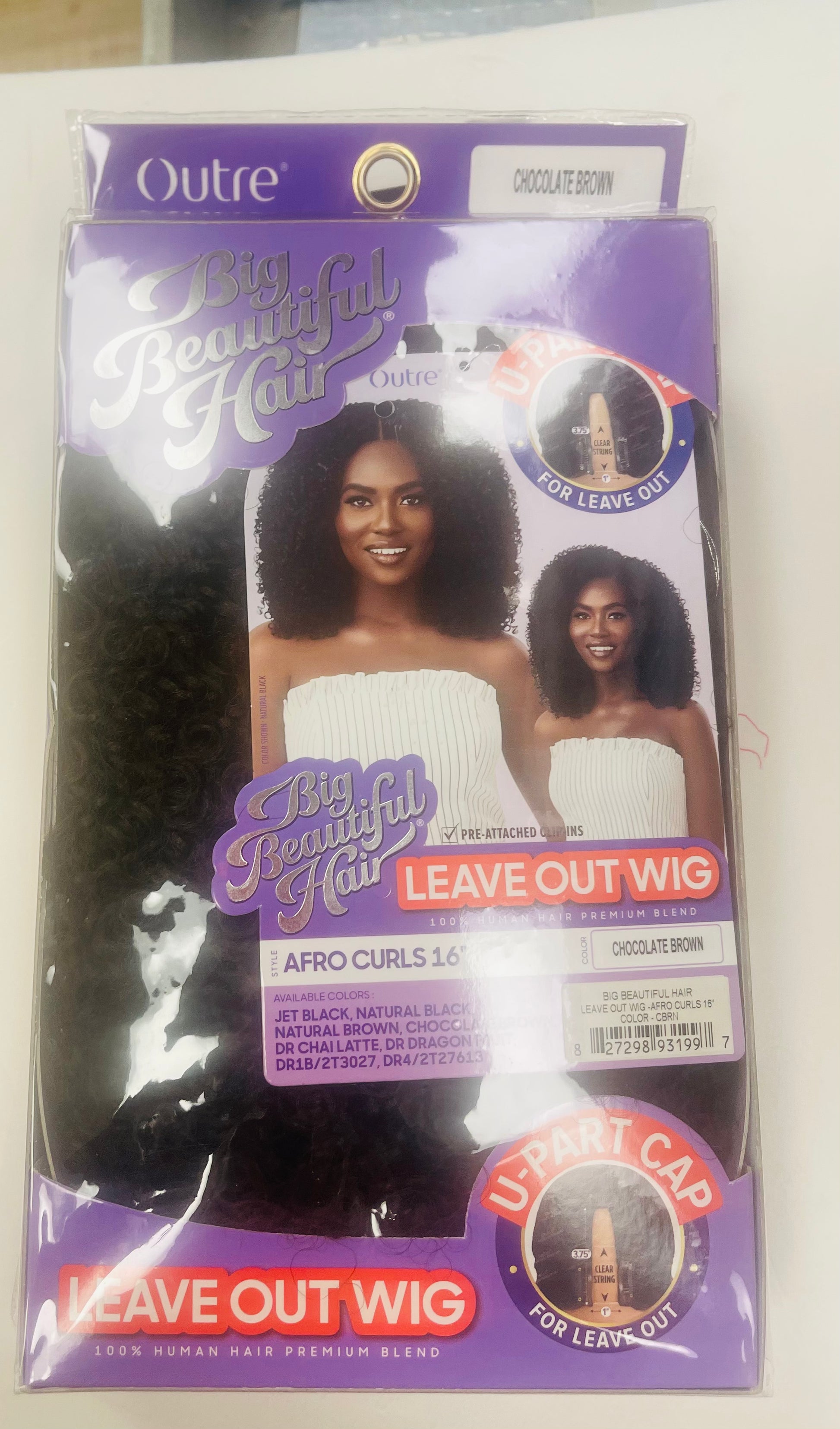 Make a bold statement with Big Beautiful Hair's Leave Out Wig. Crafted with the highest quality Afro curls, this 16" wig in chocolate brown gives you a full, natural look that is sure to turn heads. Transform your look in an instant.
