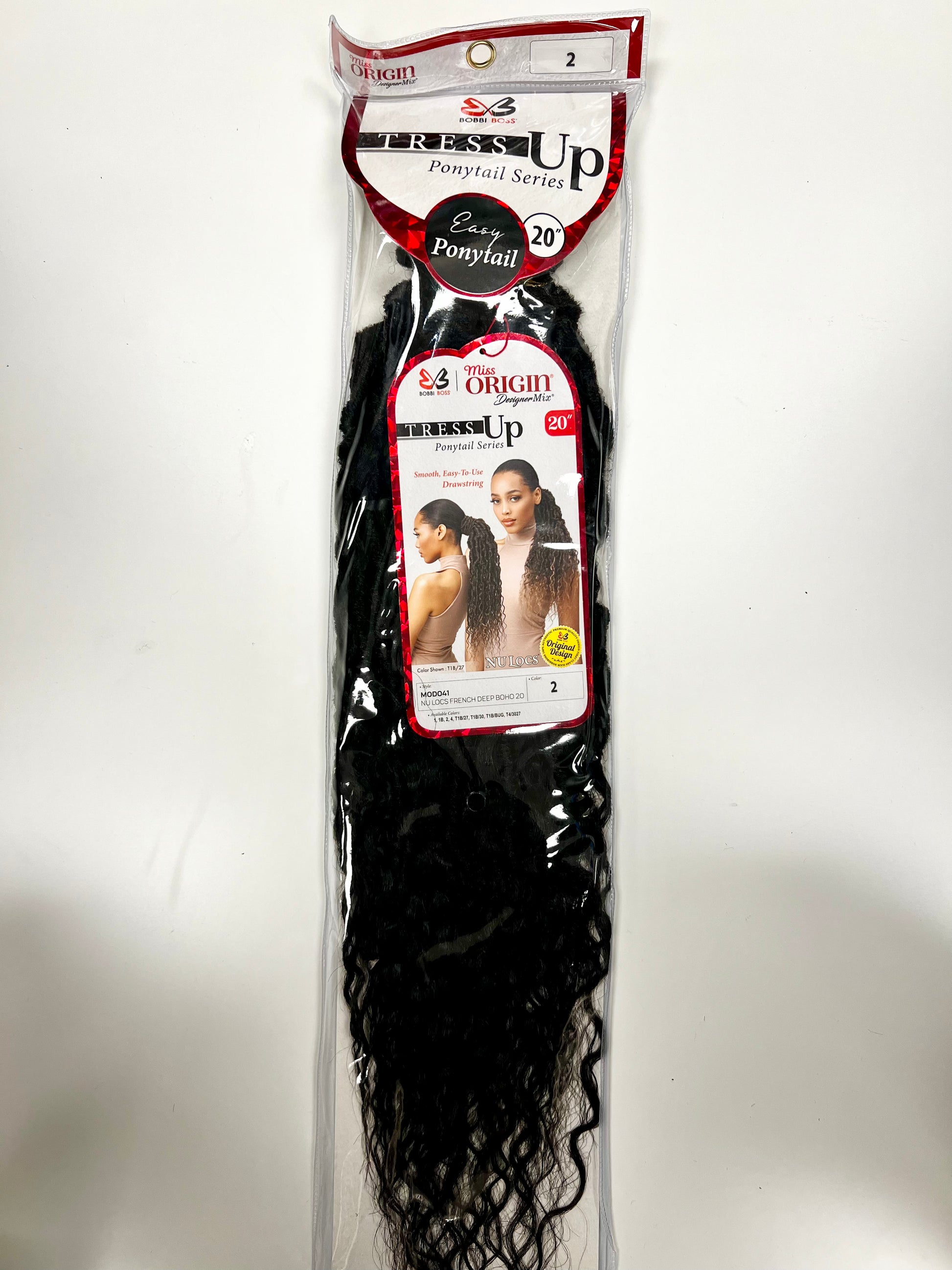 Elevate your style game with the BOBBI BOSS-PONYTAIL-NU LOCS-20''! Made with Nu Locs French Deep Boho, this ponytail offers a chic and effortless look. Experience the perfect blend of texture and volume to create a stunning and natural appearance. A must-have for an on-trend and versatile look.