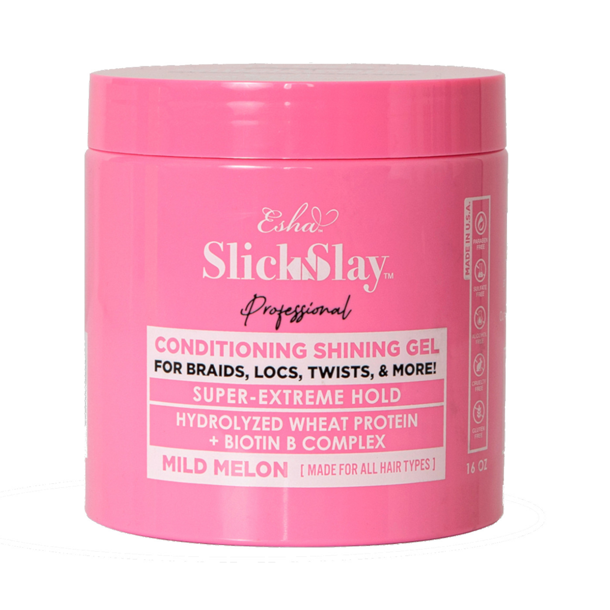 Slick N Slay Professional Conditioning Shining Gel is enhanced with hydrolyzed wheat protein & biotin B complex to hydrate & strengthen your hair! This master-formulated gel is an excellent moisturizer and styling aide for braids, twists, locs, edges, and more!