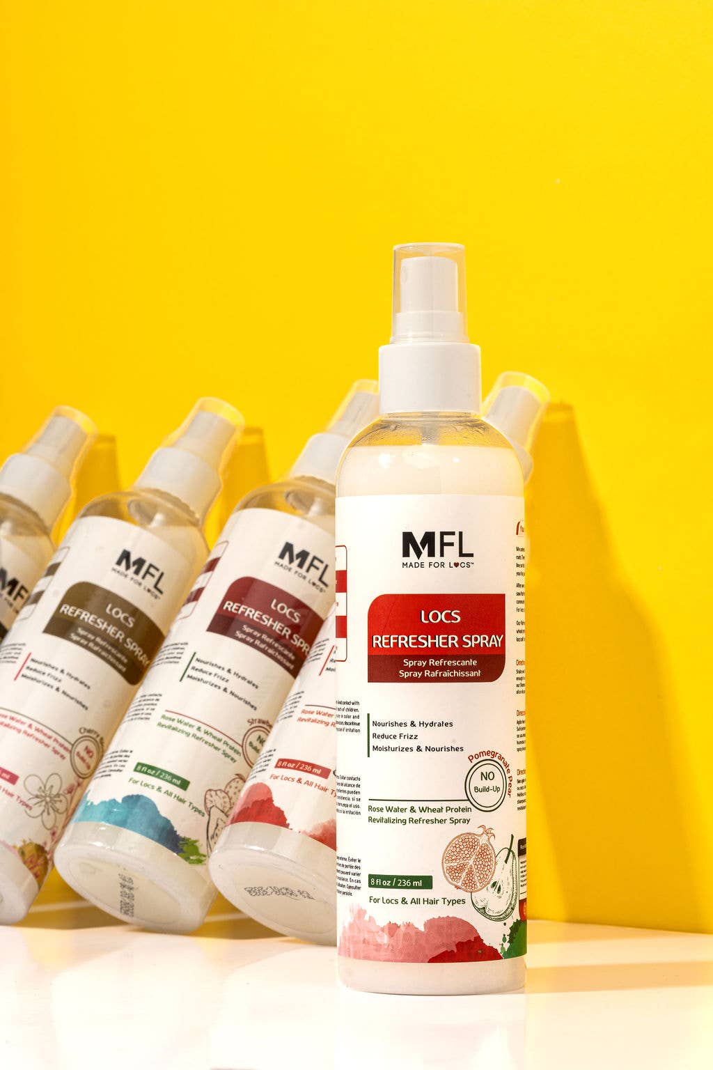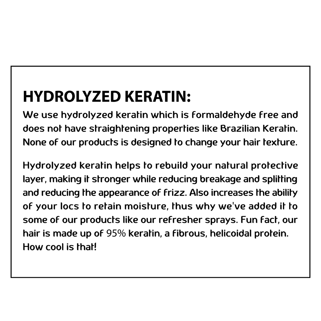One of our best-sellers is our daily refresher spray for your locs and hair that will keep it hydrated and smelling amazing throughout your day.