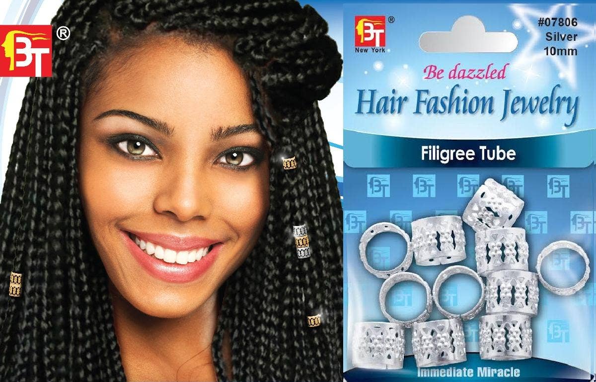 Decoration Cuffs for Braiding Hair Filigree Tube - They are not clips, just opens on the side and close around the hair - 1 Dozen Per Pack