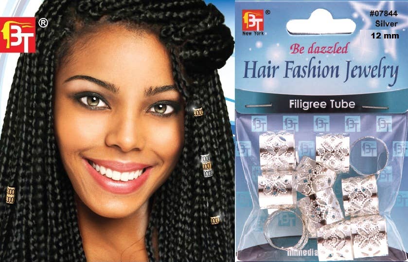 The Braid Jewelry Filigree Tube-12 mm Silver from MI Hair Distribution is the ultimate accessory for every woman's hair styling needs. This high-quality silver tube adds a touch of elegance to any braid, taking your hair game to the next level. It's not just about hair extensions, we also offer a wide variety of salon-quality hair accessories. We are committed to delivering the best in hair fashion from our warehouse in Tucker, Georgia, straight to your doorstep. Elevate your style today with our Braid Jewelry Filigree Tube.
