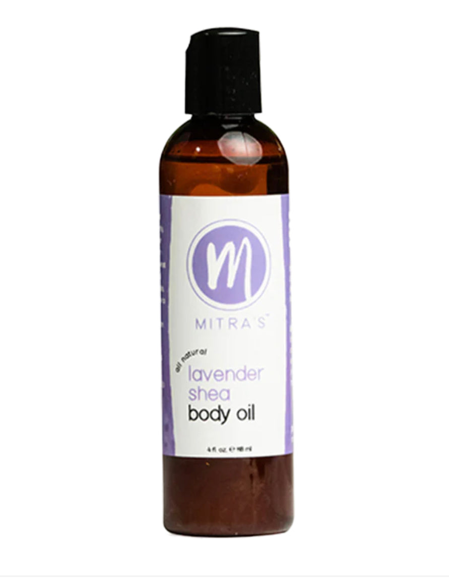 Mitras 4OZ Lavender Shea Body Oil infuses skin with luxurious moisture, thanks to the shea oil's natural antioxidants and essential fatty acids. Our highly-absorbent formula is fortified with lavender and other calming extracts, making it ideal for those seeking a soothing and calming skin experience.