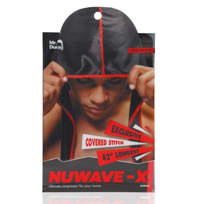 The Mr. Durag NuWave-X Black Durag Red Stripe is the ultimate durag for every wave set. With the industry's longest size of 42" and super breathable fabric, this durag ensures all-day comfort. Crafted with exclusive 360 degree red stripe, its silky fabric provides the perfect hold for any style. Get America's favorite durag for the perfect look.