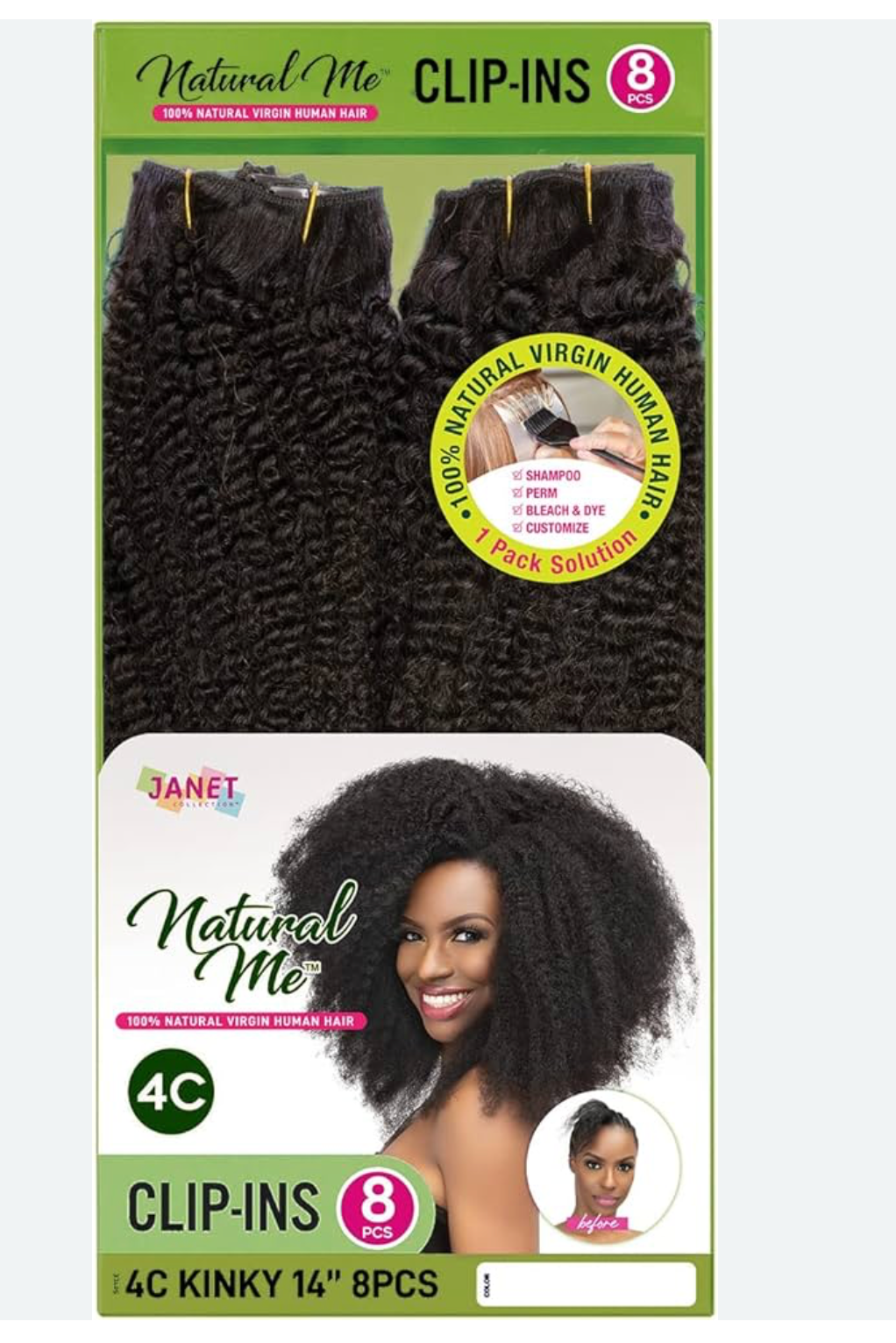 NATURAL ME-4C-KINKY CLIP - 18'' - 8(PCS)