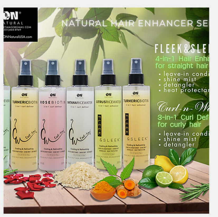 ON NATURAL-FLEEK & SLEEK- 4-IN-1-HAIR ENHANCER -TURMERIC-BIOTIN - 8 OZ