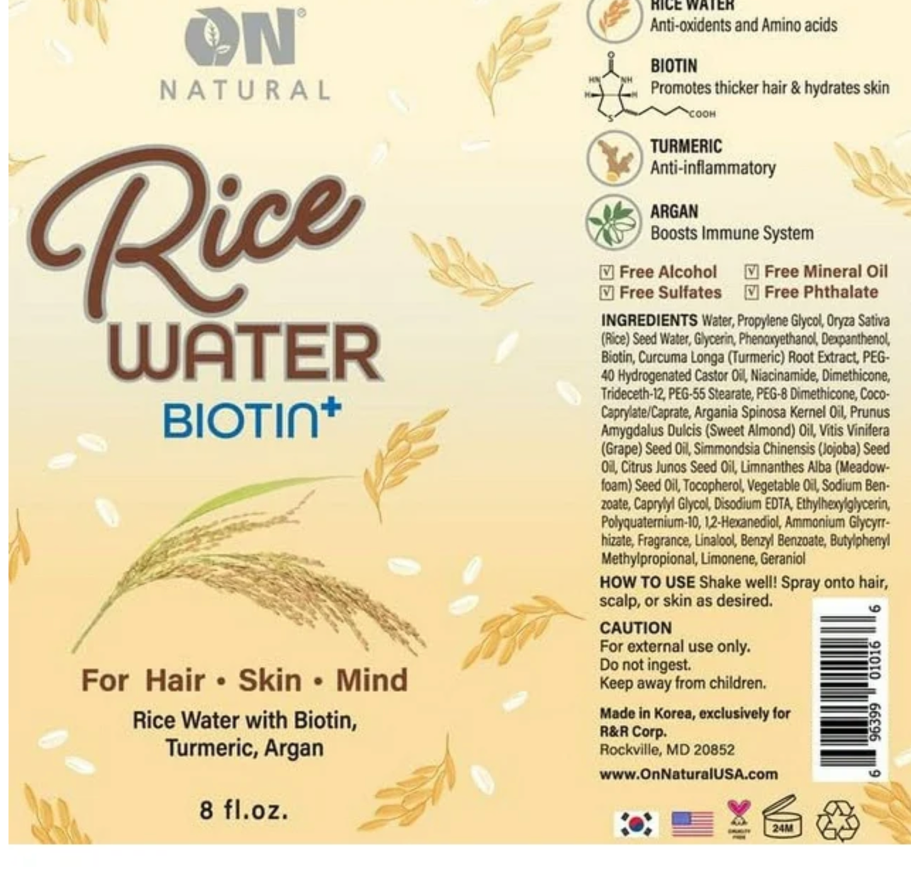 "Experience the nourishing power of ON-Natural Rice Water-Biotin shampoo. Infused with biotin, turmeric, and argan, this formula strengthens and revitalizes hair for a healthy, vibrant look. Clinically proven to increase hair growth by 15%, it's the perfect shampoo for strong, beautiful hair.