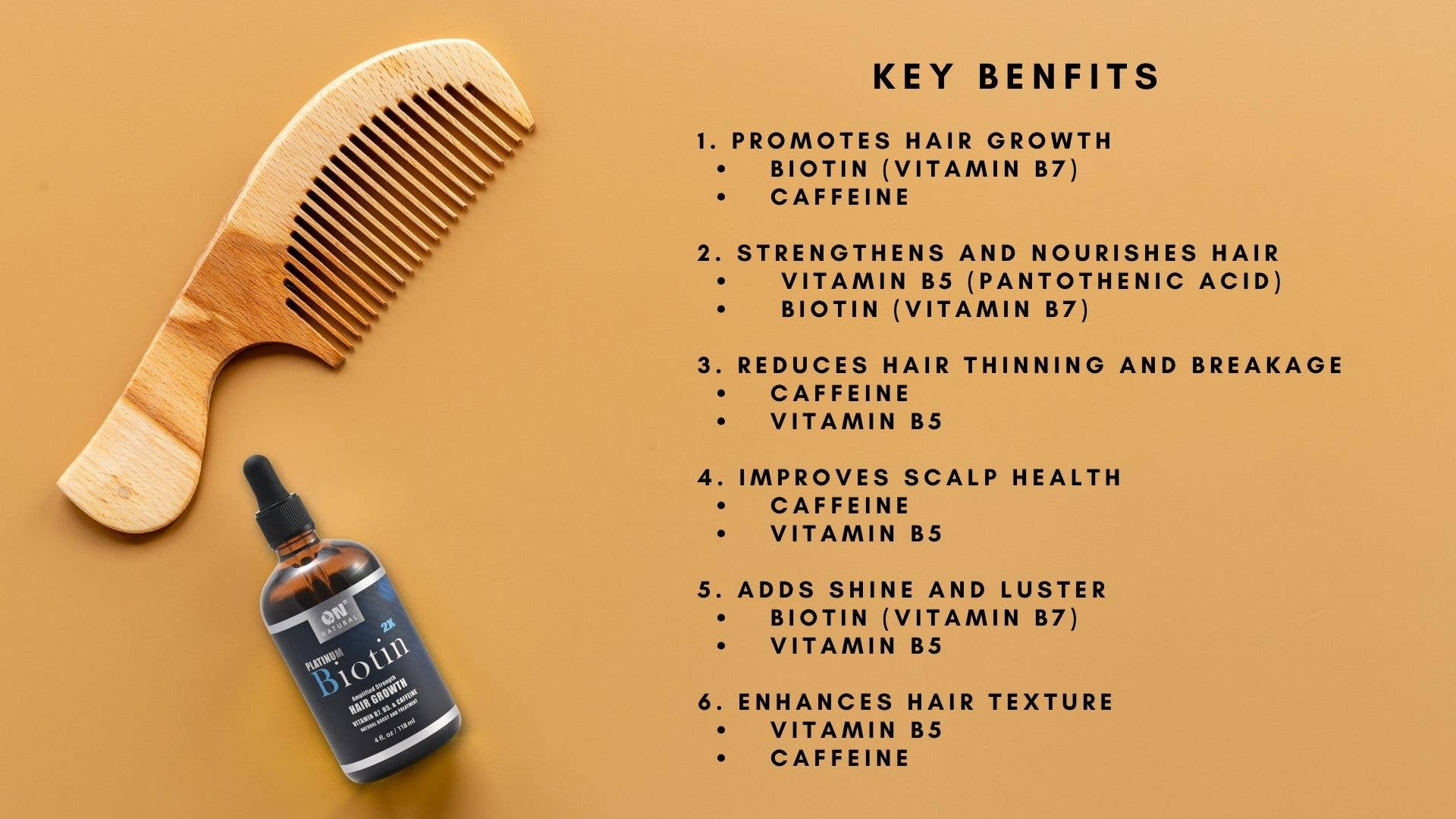 -100% Premium Formulation of Biotin, Panthenol, Caffeine, and Anti-oxidants to boost your natural hair, nail, and skin repair and growth. A biotin deficiency can lead to hair loss, brittle nails, and skin problems.