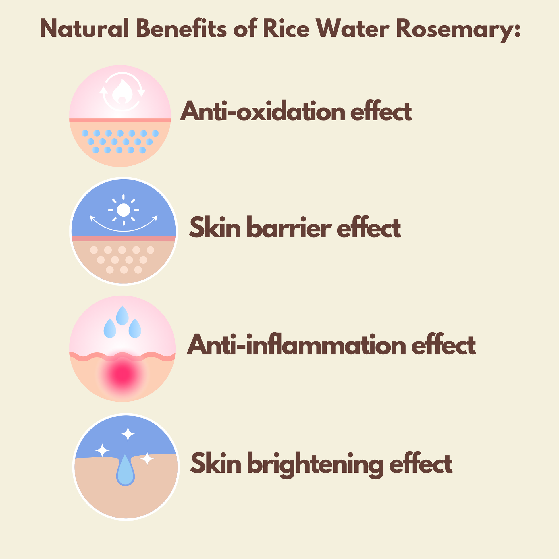 Rice Water + Rosemary + Peppermint + Witch hazel.