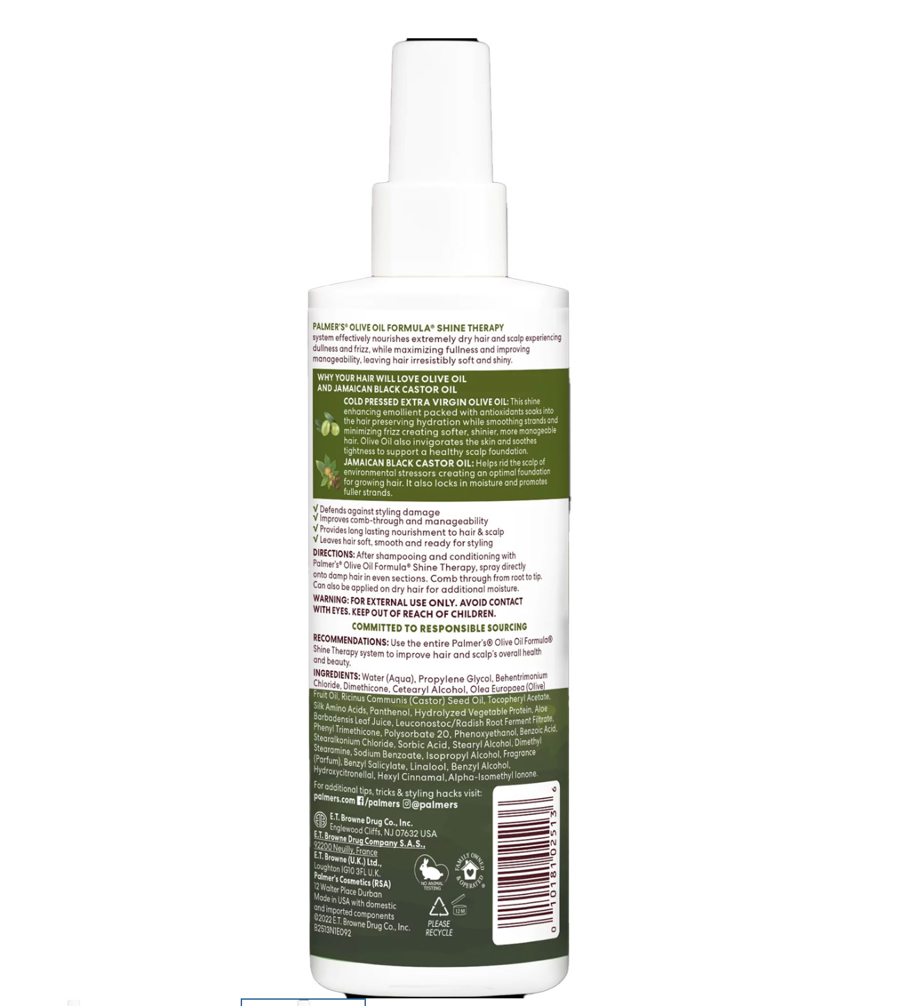 Palmer's Olive Oil Leave-in Conditioner provides professional-grade shine therapy for your hair. Formulated with nourishing olive oil, this leave-in conditioner deeply moisturizes and strengthens hair, leaving it shiny and smooth. Restore your hair's natural radiance with Palmer's Olive Oil Leave-in Conditioner.