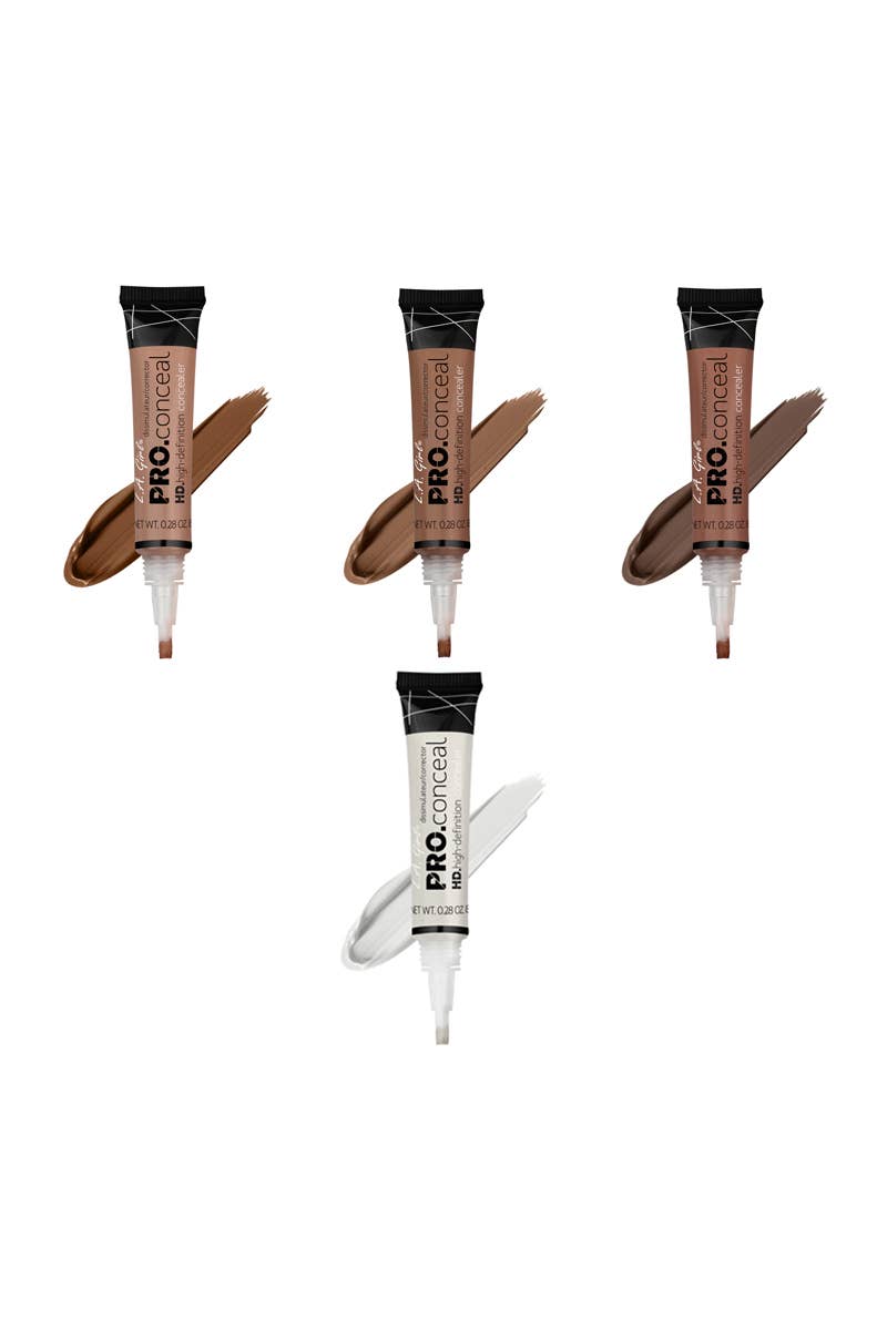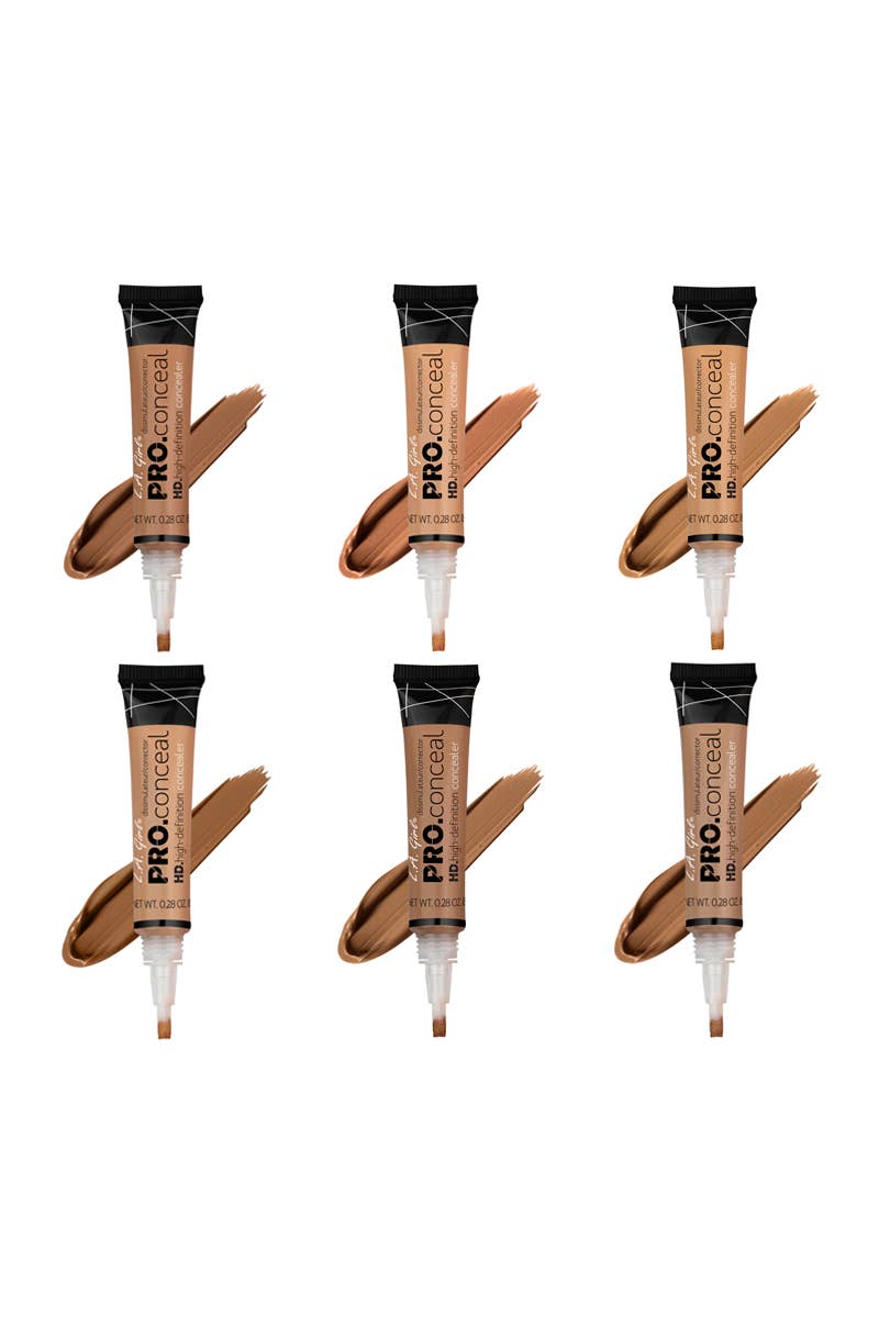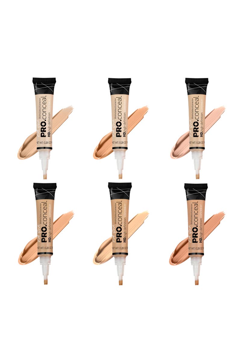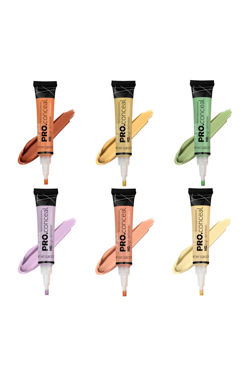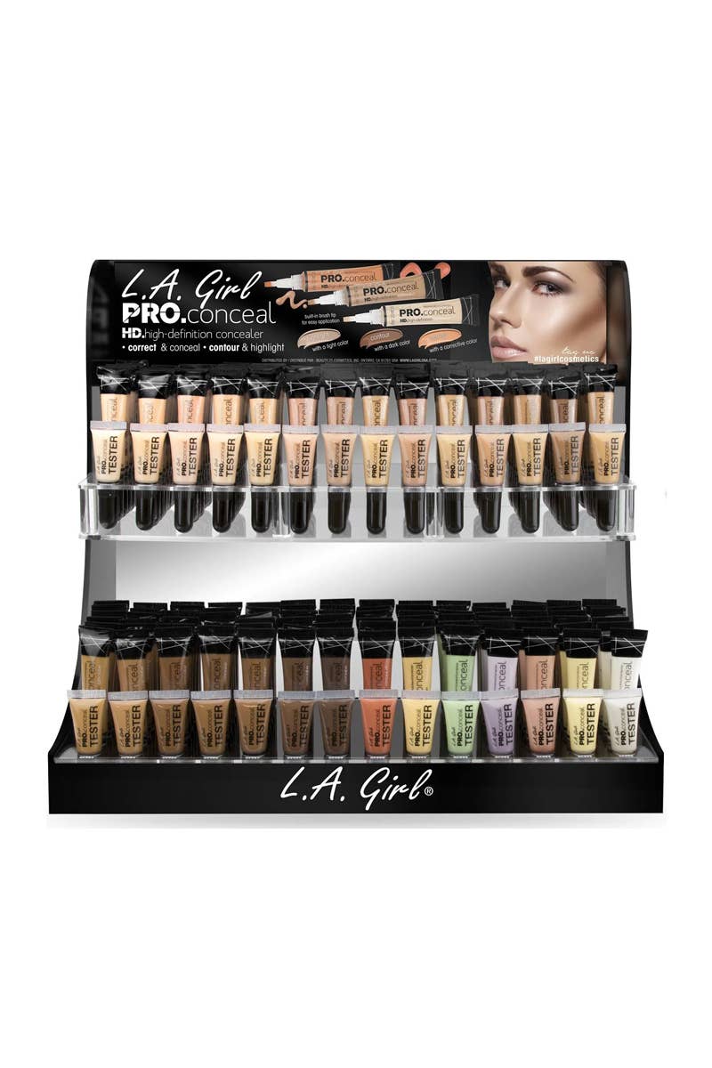 LA Girl GCD241.1z HD Pro Conceal Display Set with Testers. Crease-resistant, Opaque coverage in a creamy yet lightweight texture. The long-wearing formula camouflages darkness under the eyes, redness and skin imperfections. Available in 21 Concealers, 1 highlighter, and 6 color correctors. 336 pcs in display.