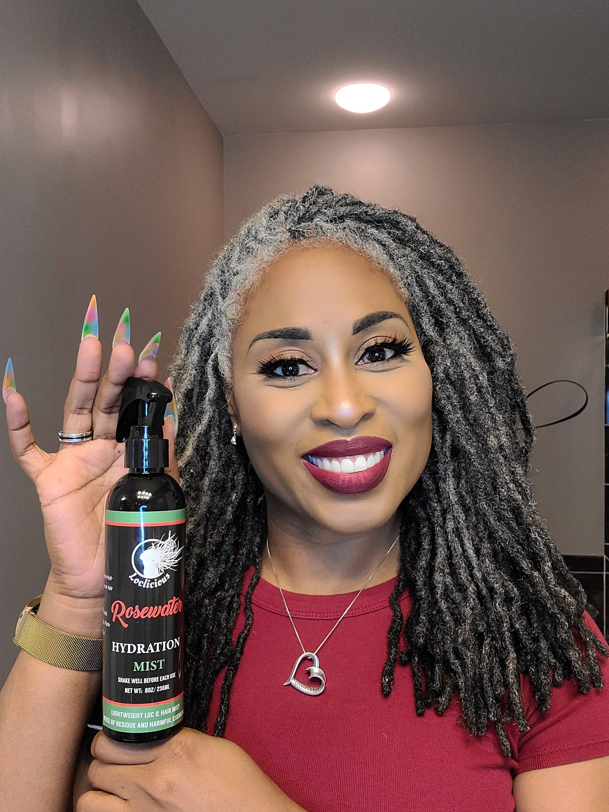 Loclicious Rosewater Hydration Mist for locs is perfect for your hair! This spray moisturizer starts with hydrating rosewater to treat your locs to its gentle care. Glycerin and organic aloe leaf juice are added for more hydration to prevent dryness and breakage. Then this lightweight mixture features an oil blend that will have your locs nourished, strengthened, moisturized, and looking their absolute best every day! The 100% pure organic oil blend includes carrier and the highest quality essential oils imported with no dilution for the highest quality oils.