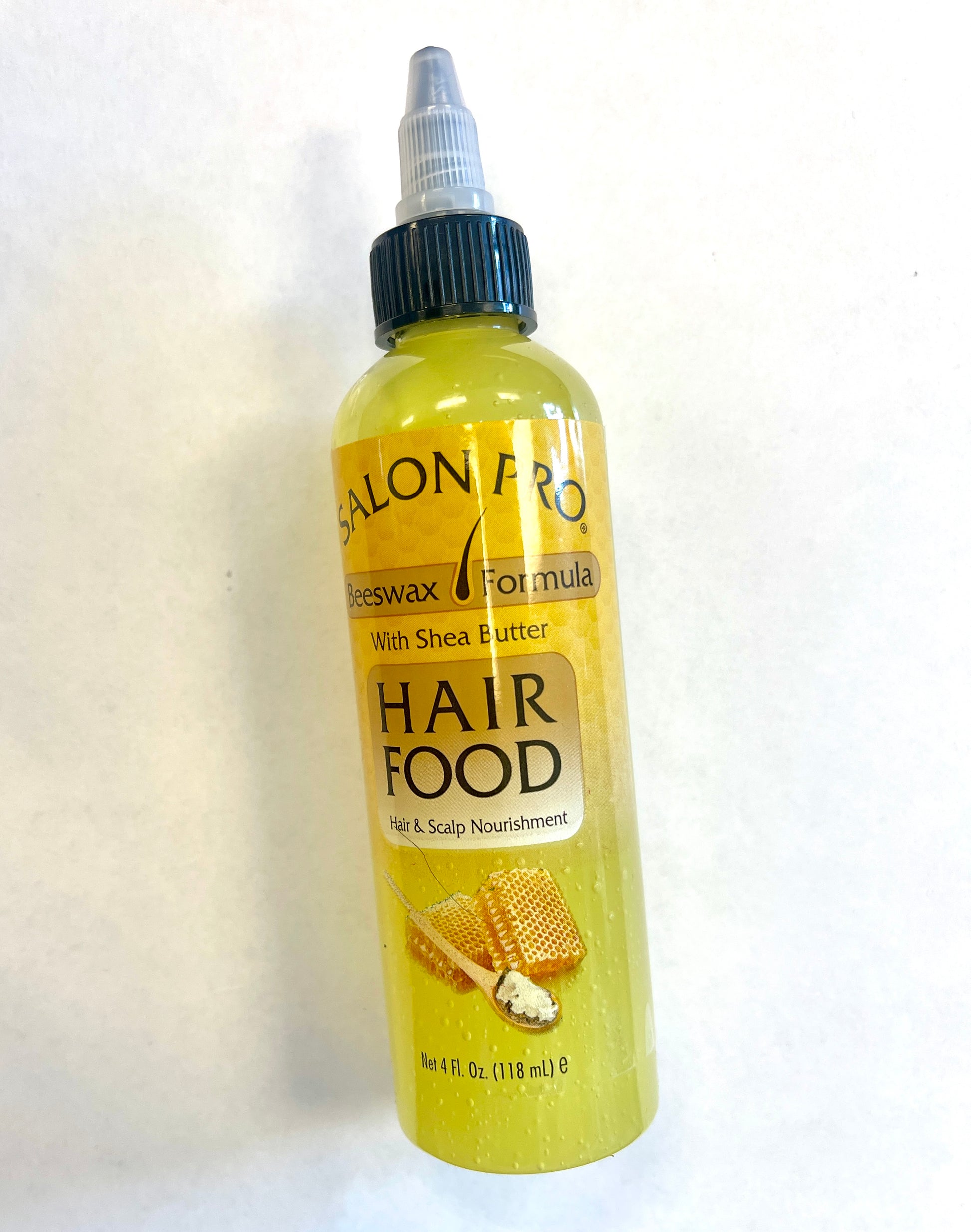 SALON PRO's BEEWAX FORMULA WITH SHAE BUTTER Hair Food helps nourish hair and scalp while promoting healthy-looking hair. A unique blend of ingredients, including Beewax and Shea Butter, deliver essential vitamins and minerals to provide essential nourishment.