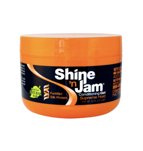 Shine 'n Jam Conditioning Gel is moisturizing and provides a strong hold. It's made with honey extract to help strengthen your hair. This Ampro Shine 'n Jam gel is formulated not to flake once it dries. It's made without alcohol, parabens, wax, petrolatum and silicones. This extra hold gel is also non-greasy and works well with natural or chemically-treated hair. It can be used to create soft waves, locks, twists or any other style. The jar has a twist on lid with a wide mouth so you can easily grab as much product as needed.