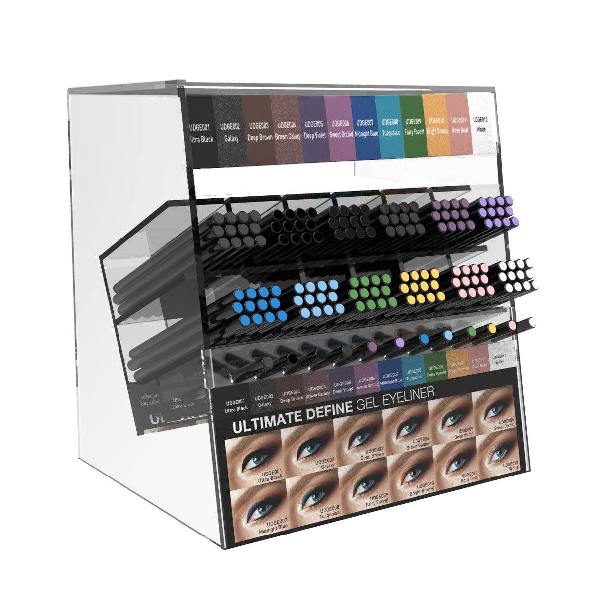 SM Beauty LLC - Ultimate Define Gel Eyeliner | Acrylic Display: Reorder - UDGE001 Ultra Black (6 pieces)