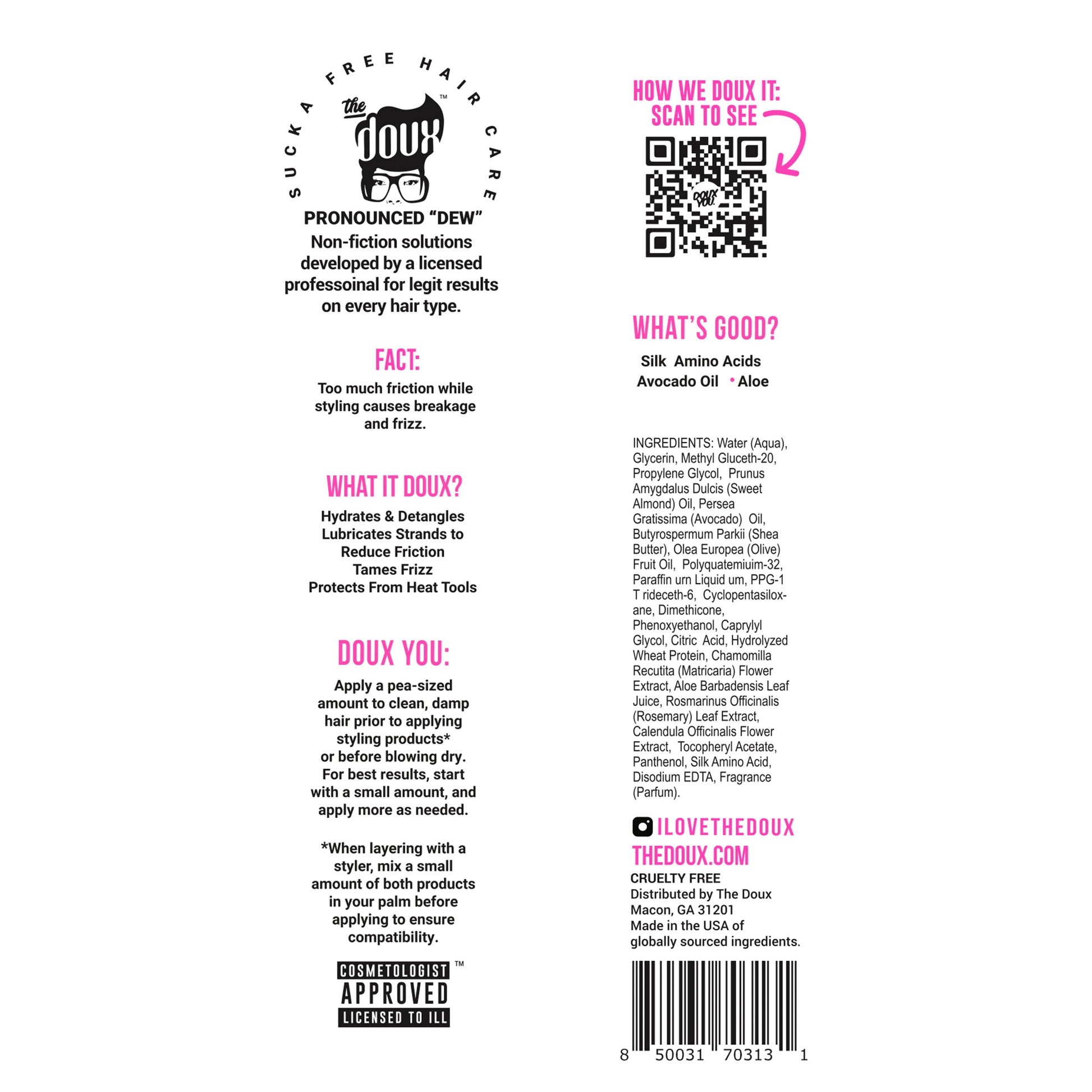 Hydrates & detangles curls, tames frizz, and protects hair from heat tools. Smooths blowouts and delivers bounce, body, and shine